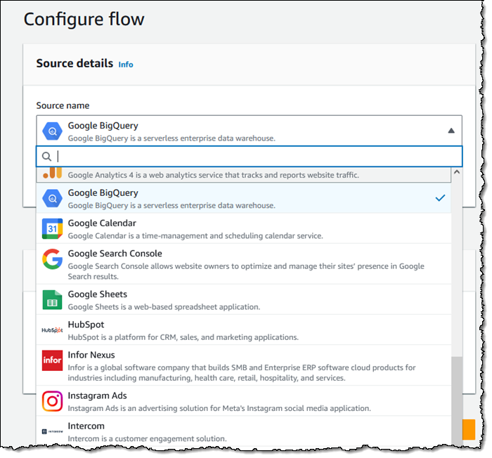 Amazon AppFlow allows data integration from various sources, including Google BigQuery. This service simplifies the process of moving and analyzing data across different cloud platforms.