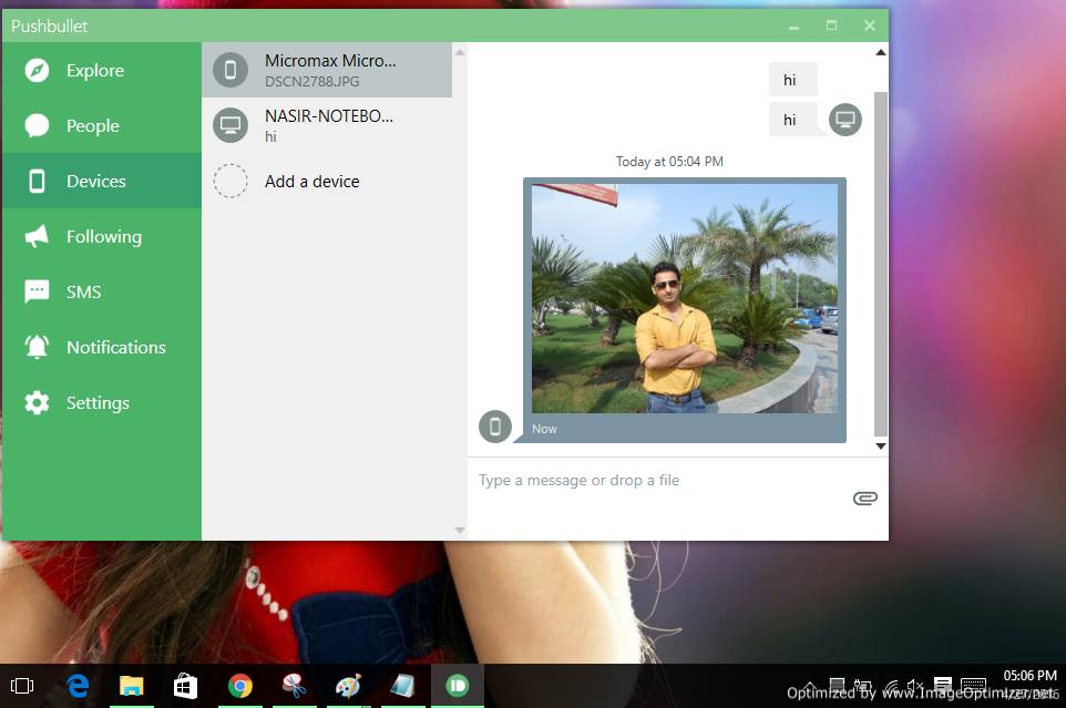 Pushbullet also makes it easy to send pictures, files, links, and more to your devices and even to friends.Sending things with Pushbullet is the easiest way to share things between your devices.Not only could you push from your desktop to the phone, but you could also push data in the reverse direction: from your phone to your computer.