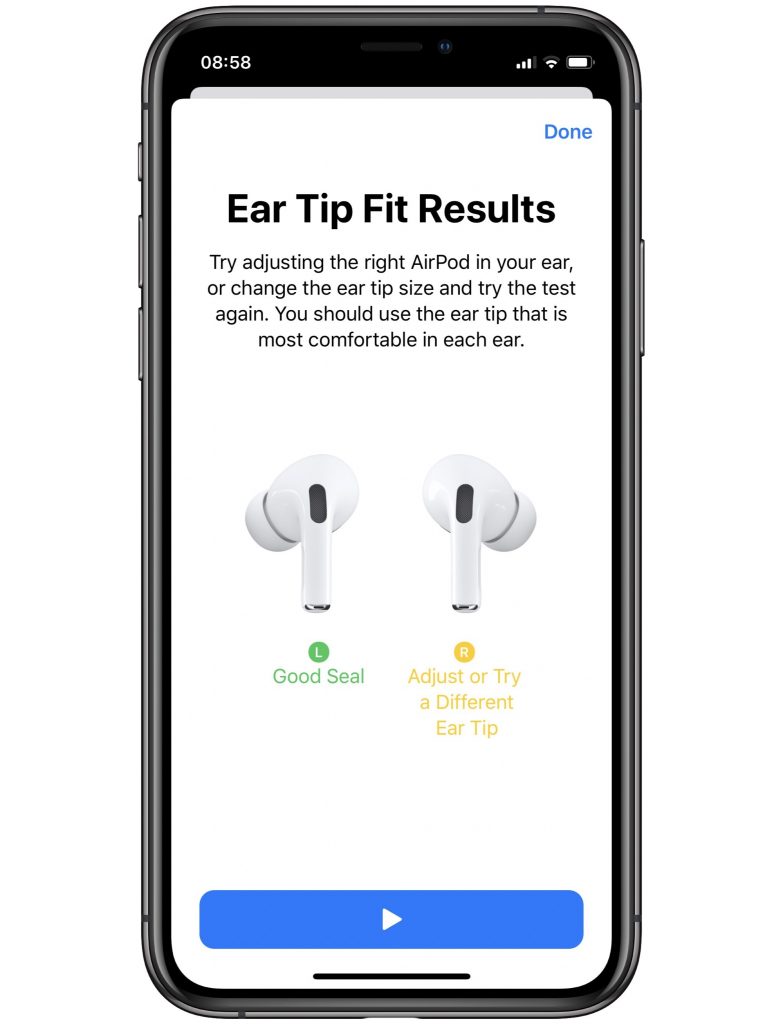 Apple has also introduced an ear fit slip test that helps figure out the best earbud that can seal your ears.