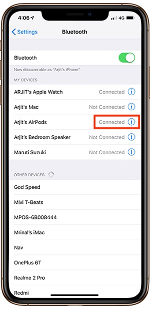 - Plug AirPods Pro into your years and then go to Settings followed by Bluetooth.