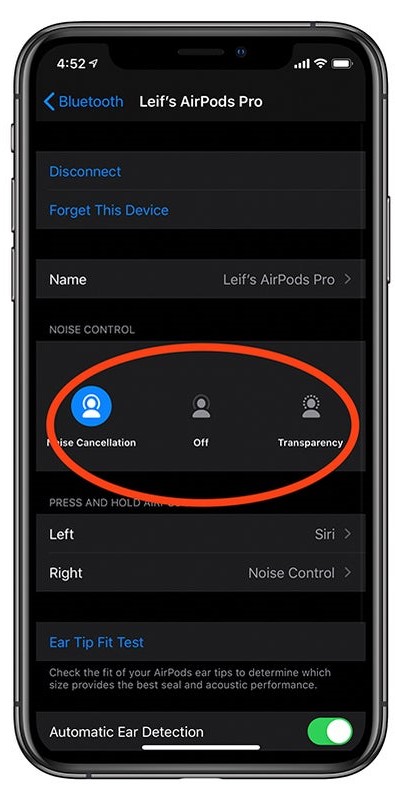 - Alternatively, go to Settings > Bluetooth > info icon and then choose Noise Cancellation or Transparency option listen under Noise Control section.