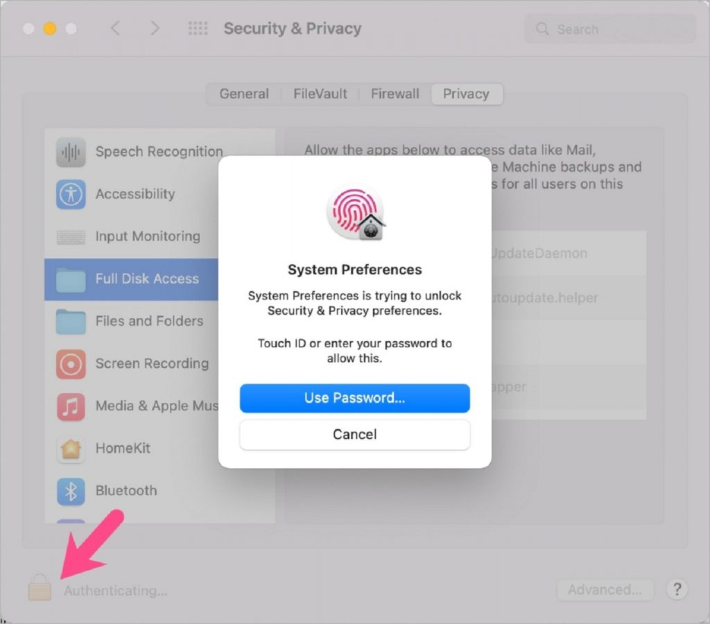 image credit: webtrickz.com - Scroll through and select “Full Disk Access” from the sidebar on the left.