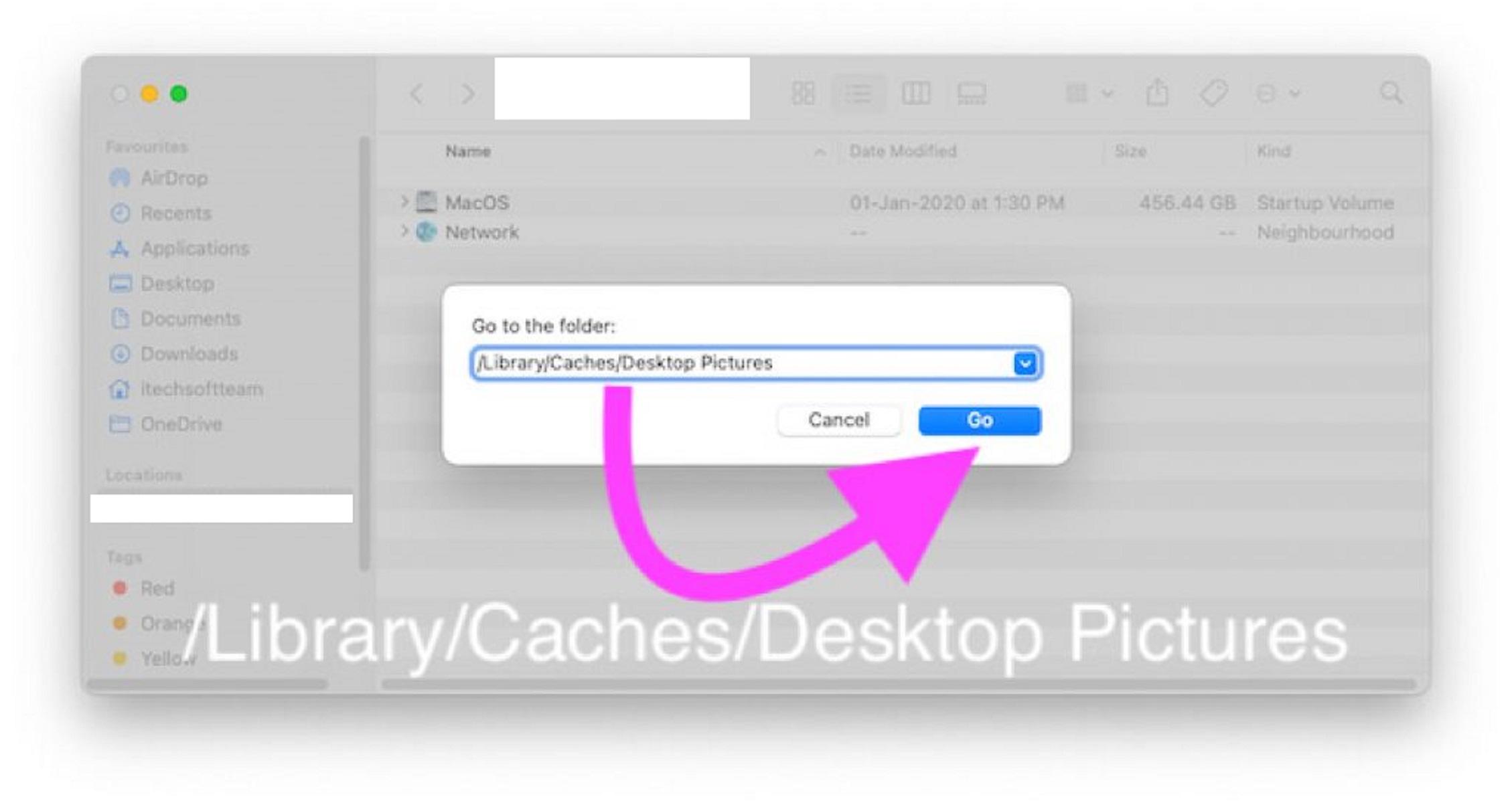 Enter the below path and move to the Desktop Pictures folder. And Click on the “Go” button.