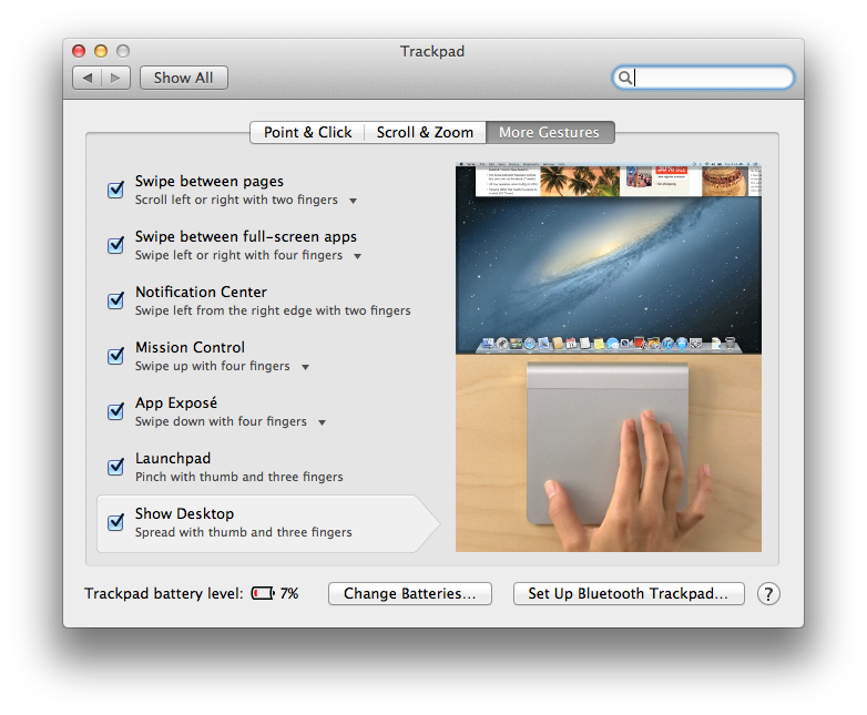 • Choose “Trackpad” and go to the “Point & Click” , “Scroll and Zoom” and ” More Gestures” all the tabs one by one.