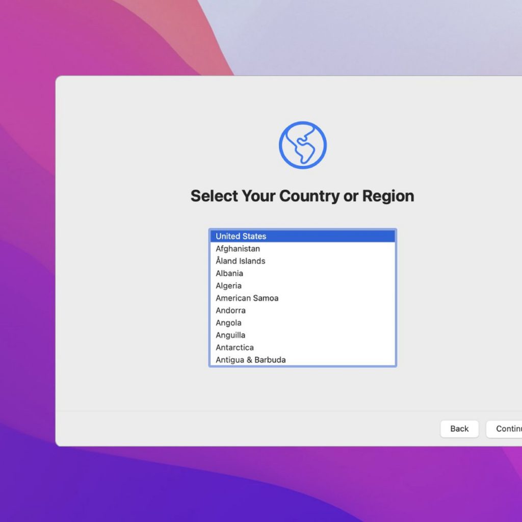 - Once the process finishes, the macOS setup screen will appear on the Mac.