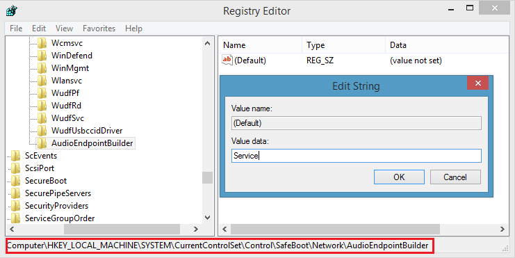 I understand the instructions up until editing the (Default) key. Am I modifying that name? Because it wont be changed. Also, am I creating AudioEndpointBuilder, MMCSS, and Audiosrv under the same location?