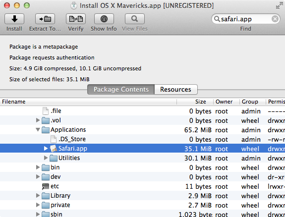 #2. Use Pacifist to extract Safari out of the original OS X installation file.