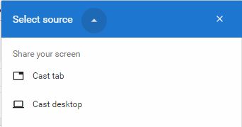 Cast your Windows PC or Mac screen to a Chromecast device - Select the source – a single Chrome Tab or the Whole Desktop Screen by clicking on the upside down arrow.