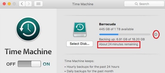 If the backup is going on, then choose ” Open Time Machine Preferences… ” and see the “time remaining” below the progress bar. If it shows more than 10 minutes then click on the ” X ” icon next to progress bar to stop it temporarily. This will definitely help finishing spotlight indexing sooner.