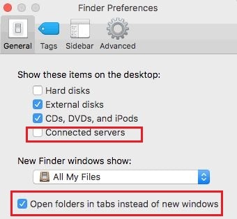 - Click on the General and make sure “Open folders in tabs instead of new windows” is checked.