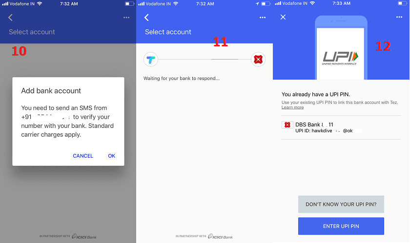 - Add / Link your bank account and set your UPI pin while adding the account.