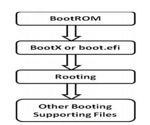 • Once the macOS partition has been selected, Boot ROM passes the control over to the Boot Loader file called Boot.efi ( earlier known as BootX) which is located in /System/Library/CoreServices folder on the root partition.