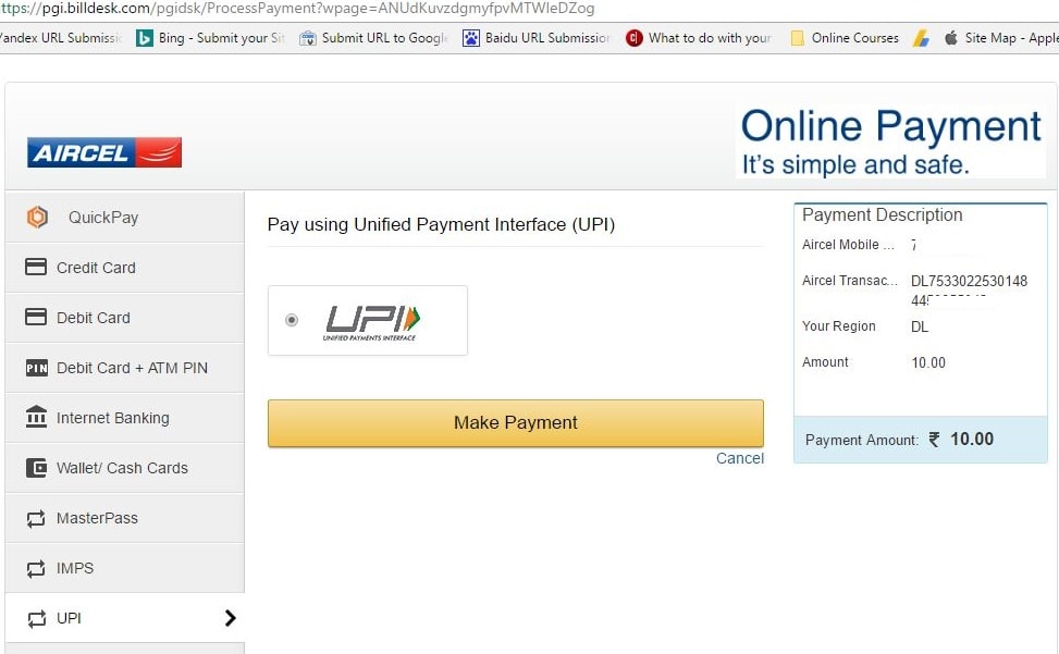 | Recharge Aircel mobile using UPI payment or BHIM APP |